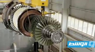 بدء تركيب عمود توربينة الوحدة الغازية الخامسة في محطة كهرباء شمال بنغازي