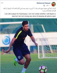 وكشف اللاعب انه لا صحة لما تردد عن رحيله عن صفوف قاسم باشا مشيرا الى أنه أنه ما زال لاعبا في فريقه التركي، ولم ينتقل إلي أي ناد أخر.