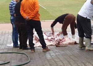 الأهلي اليوم : قام الجهاز الفني للفريق الأول لكرة القدم في النادي الأهلي ، بذبح عجل ،