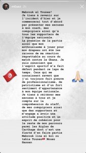 بتقديم اعتذاري لمدربي وزملائي وجماهير المنتخب الوطني كافة“.