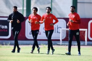 شريف إكرامي ومحمد الشناوي وعلي لطفي ومصطفى شوبير، مرانا بدنيا مع مدرب