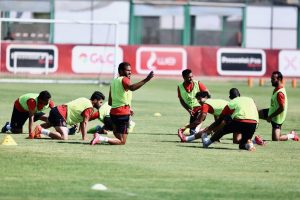 ونظرية للاعبين في ملعب التتش بالجزيرة قبل بداية المران.