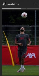 بمشاركة جميع لاعبى الفريق، ونشر صلاح، صوره خلال التدريبات عبر خاصية