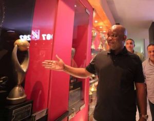 أخبار الأهلي : حرص الجنوب أفريقي بيتسو موسيماني، المدير الفني الجديد للفريق الأول بالنادي الأهلي، عقب وصوله إلى مقر النادي بالجزيرة، على تفقد منشآت القلعة الحمراء، والتقاط بعض الصور التذكارية مع الكؤوس، وجائزة نادي القرن الأفريقي التي حصل عليها الأهلي.