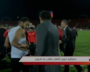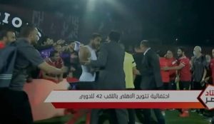 أخبار الأهلي : نشب اشتباك بالأيدي بين محمود كهربا لاعب الأهلي ومحمد فضل عضو اللجنة الخماسية لاتحاد الكرة، قبل استلام النادي الاهلي درع الدوري الممتاز مباشرة، وذلك في حضور محمود الخطيب، رئيس مجلس إدارة النادي الأهلي.