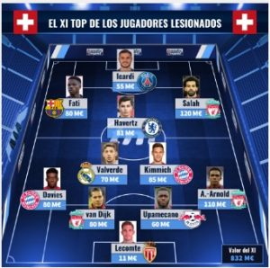 ونشر موقع “ترانسفير ماركت” العالمى، تشكيل أبرز اللاعبين المصابين أصحاب القيمة