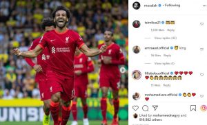 المباراة عبر حسابه بموقع “انستجرام”، بعد احرازه الهدف، والتي جمعت قرابة مليون إعجاب