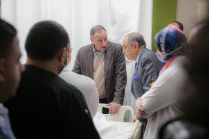 صاحب الكابتن محمود الخطيب في الزيارة الدكتور محمد شوقي، عضو مجلس إدارة النادي والذي يتابع حالة مشجع الاتحاد مع الفريق الطبي المعالج بصفة مستمرة.