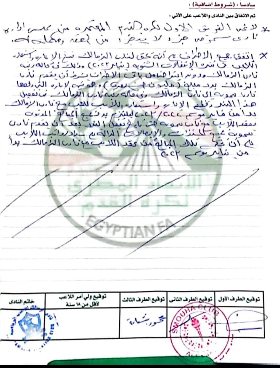 وينص العقد الخاص بإعارة محمود شبانة من نادي الزمالك إلى سموحة،