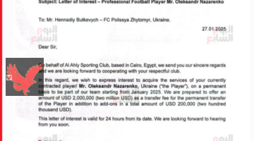 بالصور..خطاب الأهلي لضم اولكساندر نازارينكو جناح بوليسيا الأوكرانيآخر تحديثفيأخبار الأهليأخبار الرياضة