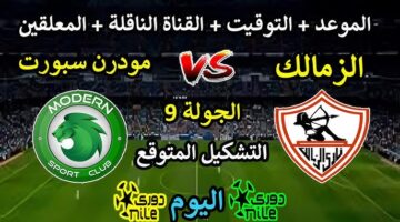 موعد والقنوات الناقله لمشاهدة مباراة الزمالك ضد مودرن سبورت اليوم الخميس 23-1-2025 في الدوري المصري على النايل سات مجاناآخر تحديثفيأخبار الرياضة