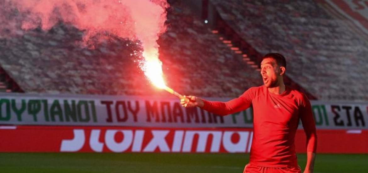 كوكا يحتفل بالشماريخ بعد تتويجه بلقب الدوري اليونانى مع أولمبياكوس(فيديو)