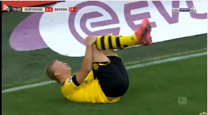 هالاند يتعرض لإصابة قوية فى الساق..والحكم يحرمة من ضربة جزاء(فيديو)