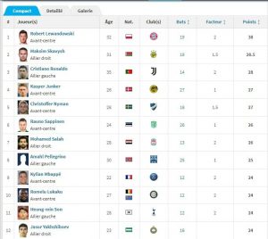 ويحتل ليفاندوفسكي الصدارة برصيد 38 نقطة، فيما صعد النجم البرتغالي كريستيانو